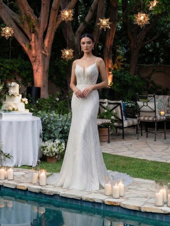 - Basen bölgesini sıkıca saran balık gelinlikler, kum saati vücut tipine sahip gelinler için ideal.