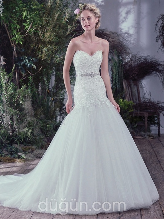 - Omuzları öne çıkaran bu straplez yaka gelinlik, özellikle açık ya da yarım toplu saç modelleri ile büyük bir uyum sağlıyor.
