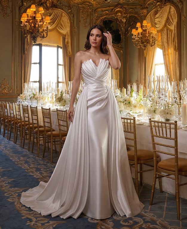 - En yaygın gelinlik yaka tiplerinden bu V yaka gelinlik, boyu daha uzun, göğüsleri ise olduğundan daha küçük gösteriyor.