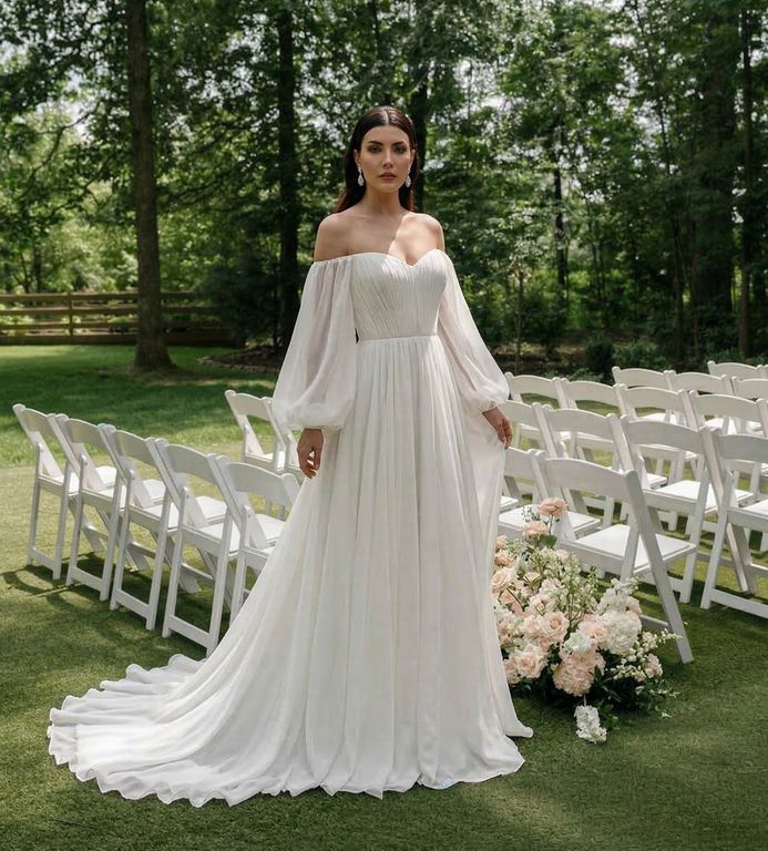 Düşük Omuz A Kesim Gelinlik