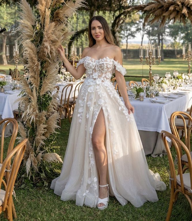 Düşük Omuzlu A Kesim Gelinlik
