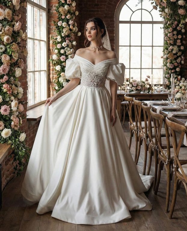 - En çok tercih edilen yaka tiplerinden bu düşük omuz gelinlik, özellikle dar omuzlu gelinlere çok yakışıyor.
