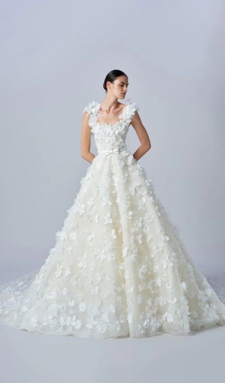 - Yakanın dik indiği bu kare yaka gelinlik, köprücük kemiği ile dekolte bölgesini öne çıkararak, zarif bir görüntü yaratıyor.