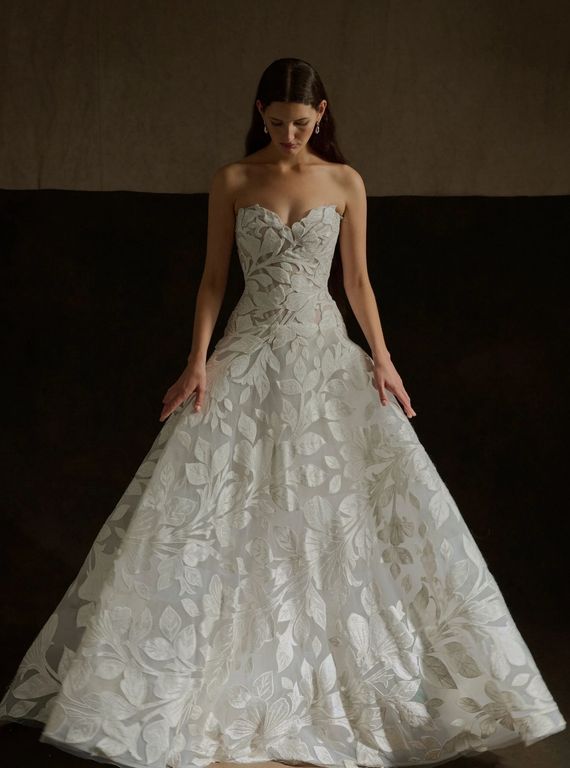 - Omuzları öne çıkaran bu straplez yaka gelinlik, özellikle açık ya da yarım toplu saç modelleri ile büyük bir uyum sağlıyor.