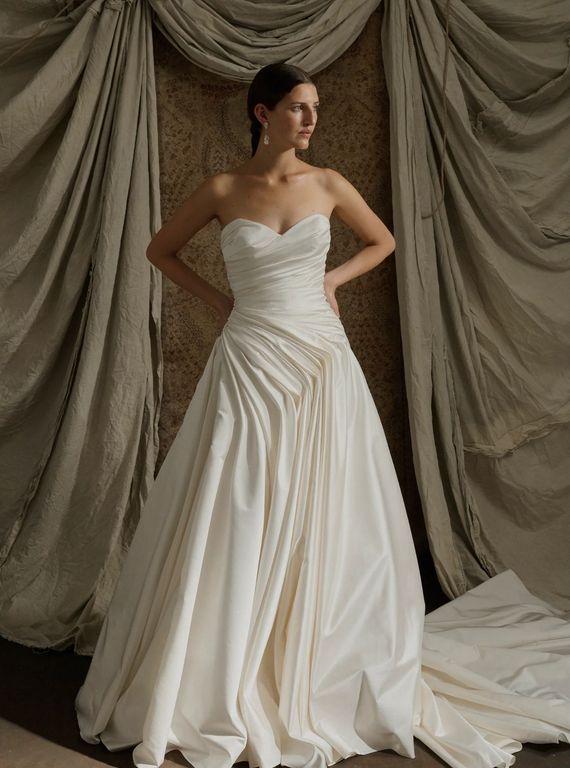 - Omuzları öne çıkaran bu straplez yaka gelinlik, özellikle açık ya da yarım toplu saç modelleri ile büyük bir uyum sağlıyor.