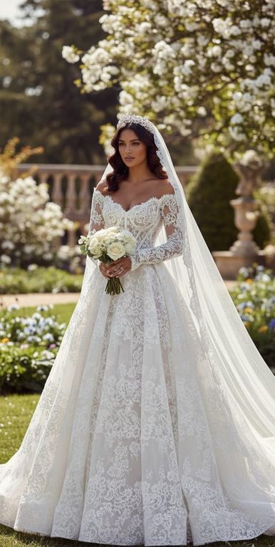 Tamamı Fransız danteli, korseli, uzun kollu Erbay Ekinci gelinlik