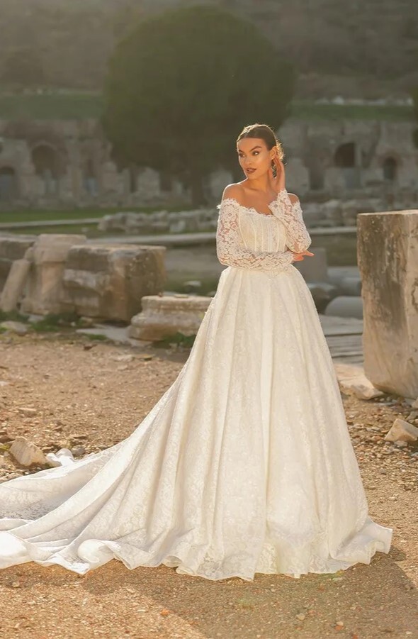 Prenses kesim gelinlik modellerini özellikle kabarık etekler ile geniş basenlerini kamufle etmek isteyen armut vücut tipine sahip gelin adaylarına öneriyoruz. Fransız danteli de dahil olmak üzere gelinlikte kullanılan işlemelerin bulunduğu bölgeye hacim hareket kattığını göz önünde bulundurmalısınız. Bu nedenle ince gövdeli armut vücut tipindeki gelin adayları dengeli bir görünüm yaratmak için gövdesi ve kolları Fransız dantelli modellere yönelebilir.