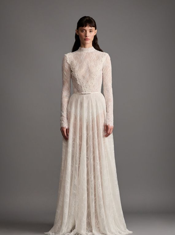 - İnce ve uzun bir boyna sahip gelinlere çok yakışan bu hakim yaka gelinlik, özellikle topuz gelin saçı ile kombinlenince çok şık bir görüntü yaratıyor.