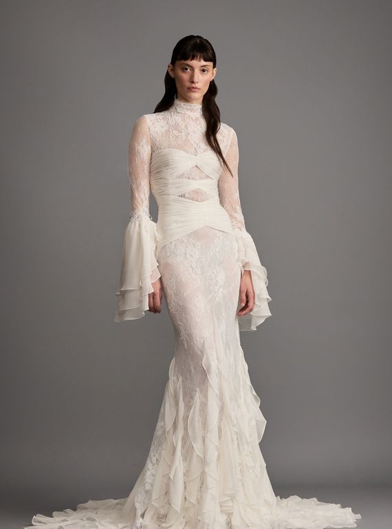 - Hayal tül kullanılan bu illüzyon yaka gelinlik, gelinlere hem şık hem gizemli bir hava katıyor.