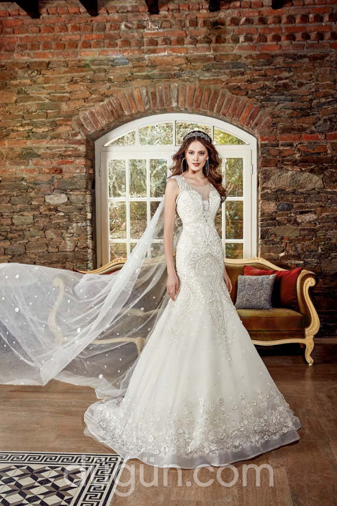 - Basen bölgesini sıkıca saran balık gelinlikler, kum saati vücut tipine sahip gelinler için ideal.