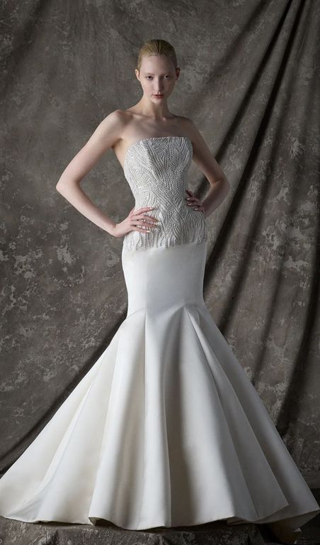- Pürüzsüz ve sert yapıya sahip mikado kumaştan hazırlanan bu gelinlik, sonbahar ve kış aylarında evlenecek gelinlerin favorisi olacak.