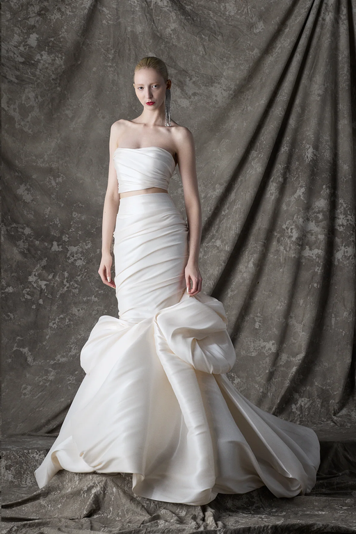 - Pürüzsüz ve sert yapıya sahip mikado kumaştan hazırlanan bu gelinlik, sonbahar ve kış aylarında evlenecek gelinlerin favorisi olacak.