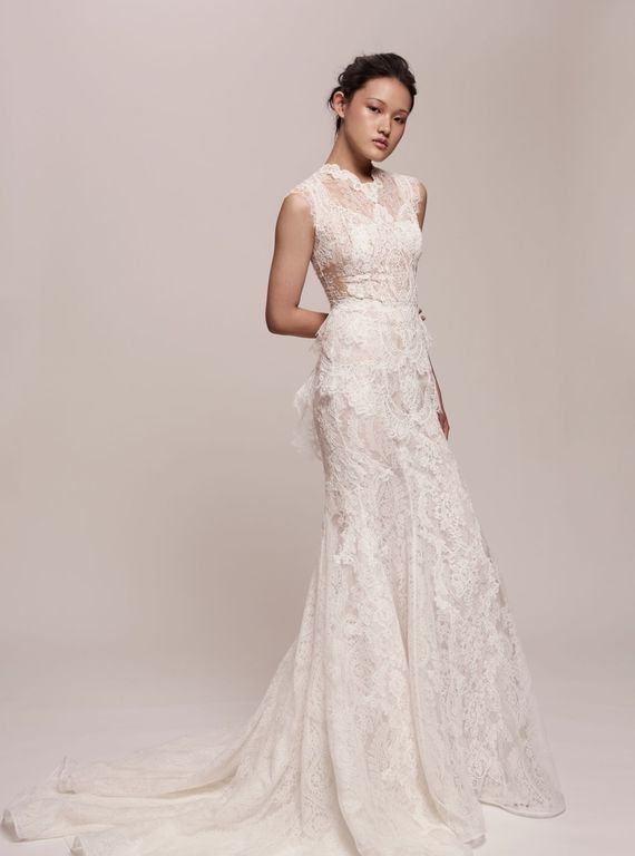 - İnce ve uzun bir boyna sahip gelinlere çok yakışan bu hakim yaka gelinlik, özellikle topuz gelin saçı ile kombinlenince çok şık bir görüntü yaratıyor.