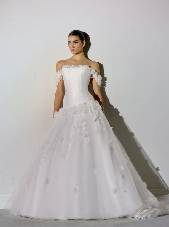 - En çok tercih edilen yaka tiplerinden bu düşük omuz gelinlik, özellikle dar omuzlu gelinlere çok yakışıyor.