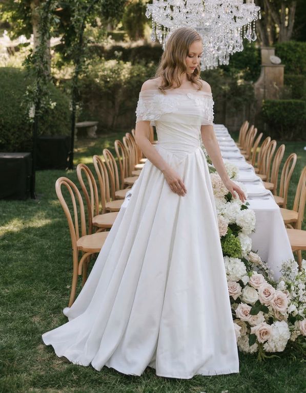 Düşük Omuz A Kesim Gelinlik