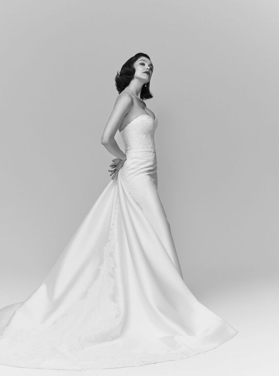 - Omuzları öne çıkaran bu straplez yaka gelinlik, özellikle açık ya da yarım toplu saç modelleri ile büyük bir uyum sağlıyor.