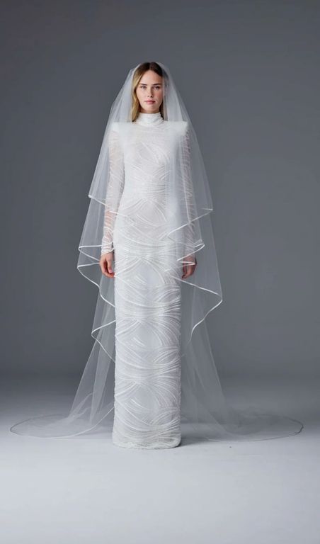- İnce ve uzun bir boyna sahip gelinlere çok yakışan bu hakim yaka gelinlik, özellikle topuz gelin saçı ile kombinlenince çok şık bir görüntü yaratıyor.
