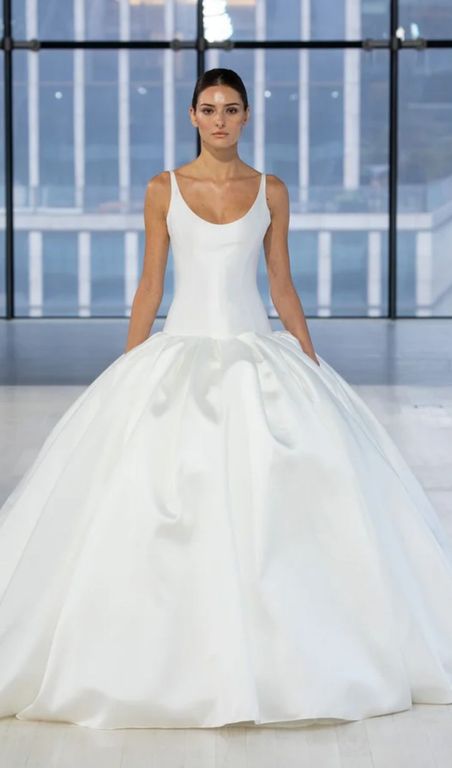 - U harfi formundaki bu U yaka gelinlik, köprücük kemiğini sergileyerek, vücuda zarif bir görüntü katıyor.