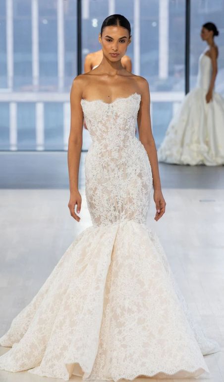 - Basen bölgesini sıkıca saran balık gelinlikler, kum saati vücut tipine sahip gelinler için ideal.