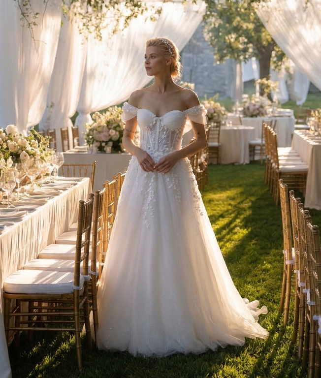 - Naif ve sakin tarzını gelinliğine yansıtmak istiyorsan ve masal gibi bir kır düğünü ile evleneceksen, bu romantik model uygun seçim olabilir.