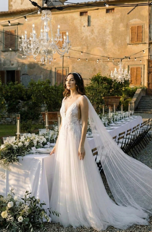 - Naif ve sakin tarzını gelinliğine yansıtmak istiyorsan ve masal gibi bir kır düğünü ile evleneceksen, bu romantik model uygun seçim olabilir.