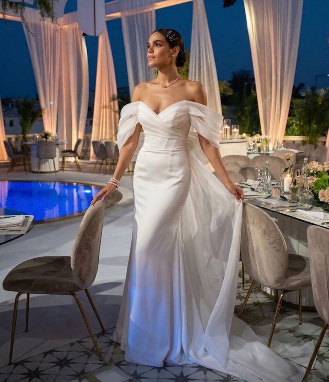 - En çok tercih edilen yaka tiplerinden bu düşük omuz gelinlik, özellikle dar omuzlu gelinlere çok yakışıyor.