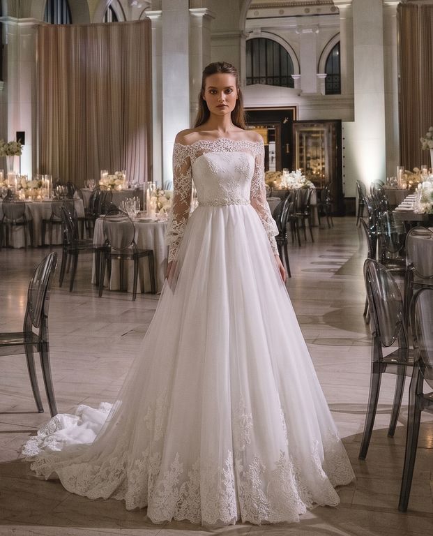 - En çok tercih edilen yaka tiplerinden bu düşük omuz gelinlik, özellikle dar omuzlu gelinlere çok yakışıyor.