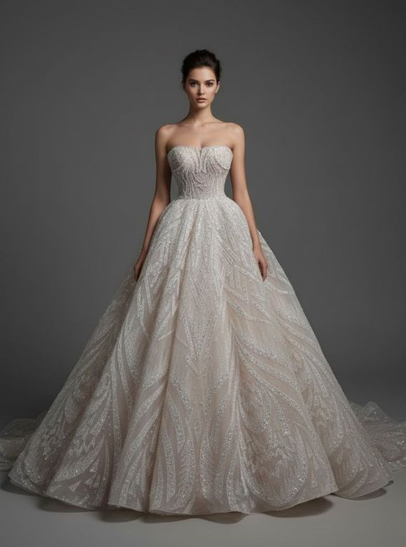 Komple parıltılı, gösterişli gelinlik
