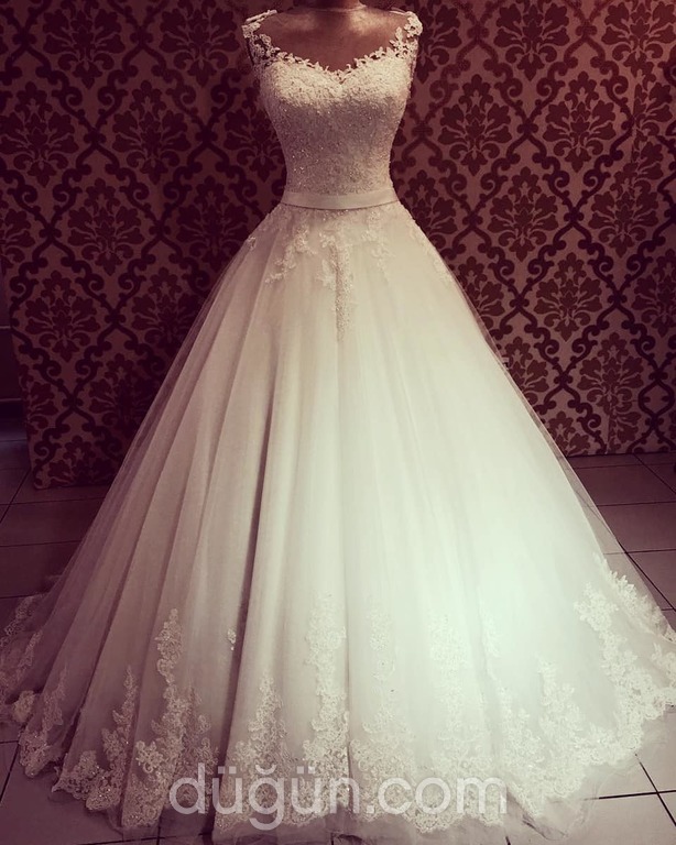 Kuyruklu sırt detaylı işlemeli gelinlik