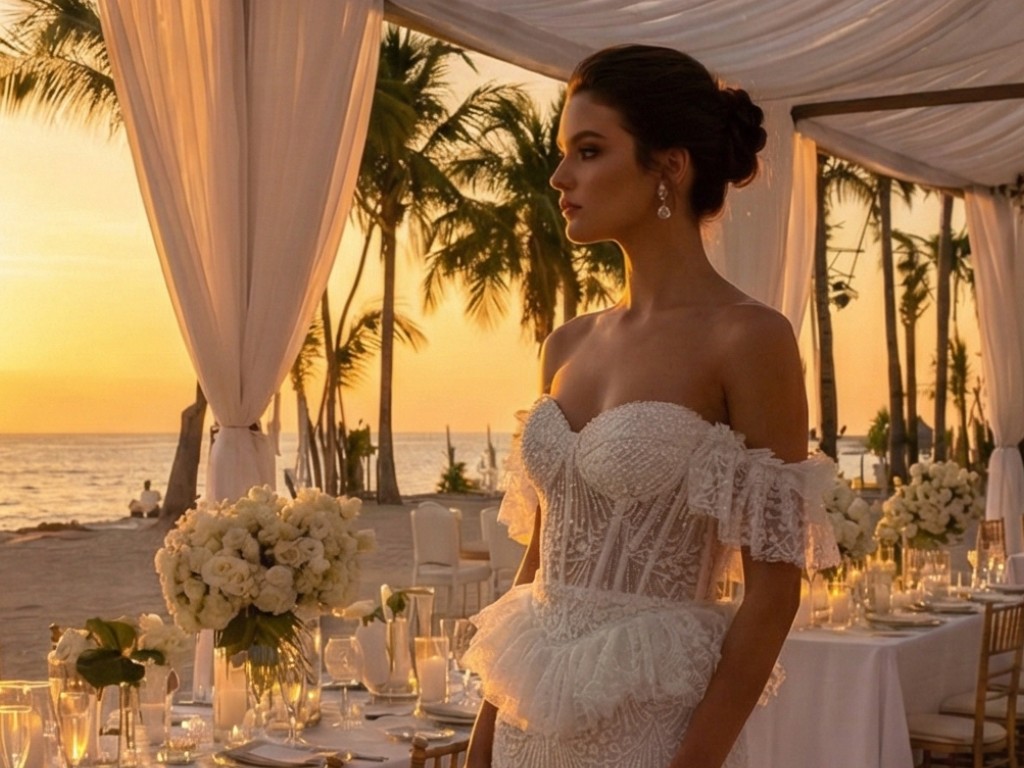Katlı etekli, dantel işlemeli, korseli, düşük omuz gelinlik