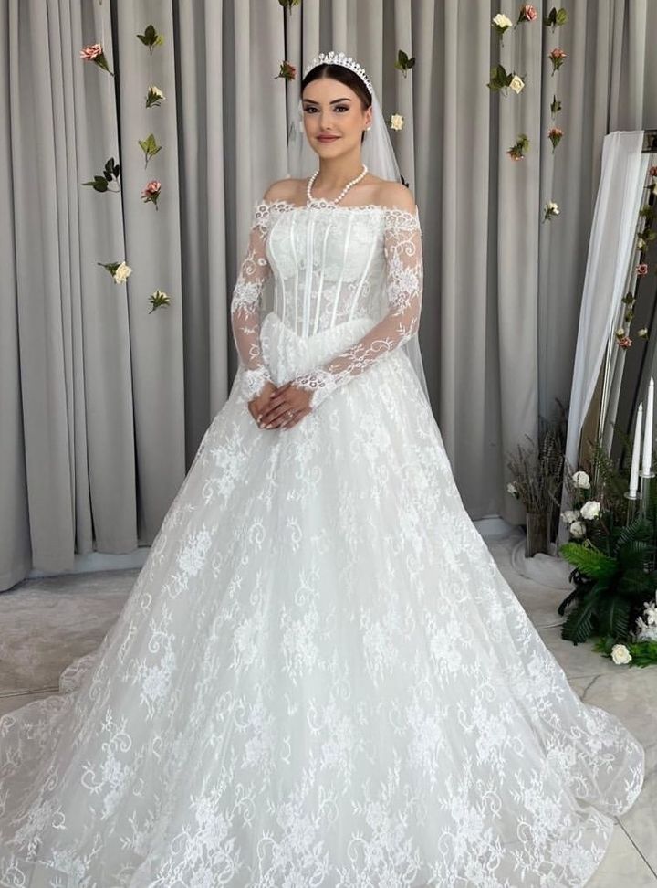 A kesim uzun kollu gelinlik modelleri, gelin adaylarının en çok tercih ettiği tasarımlar arasında. Özellikle armut vücut tipine sahip gelin adaylarının basenlerini kamufle etmek için tercih ettiği bu modellerin dantel kollu seçenekleri oldukça popüler. İnce kollar için dantelli, kalın kollar için ise tül kollu A kesim gelinlik modellerini tercih edebilirsiniz.