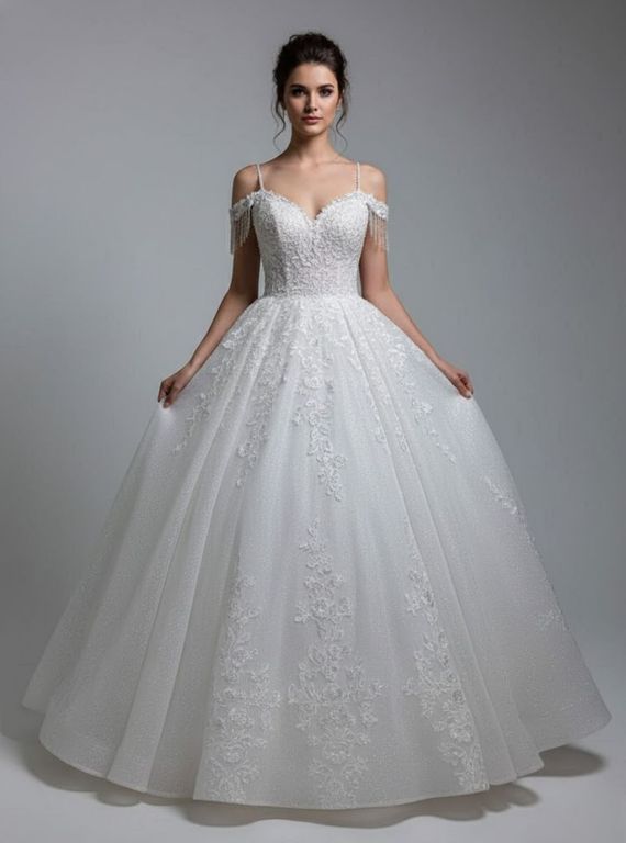 İşlemeli, simli, dantelli gelinlik