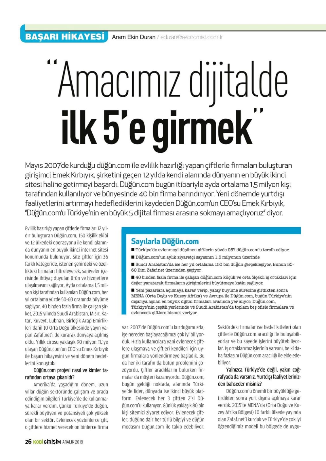 - Düğün.com Türkiye’nin en büyük 5 dijital şirketi arasına girmeye aday.