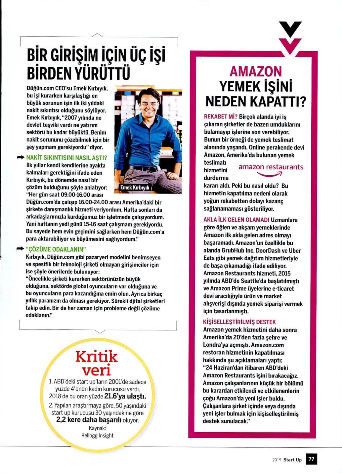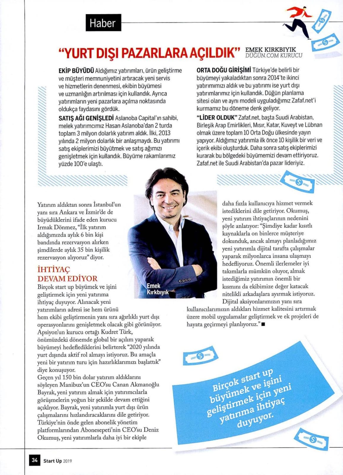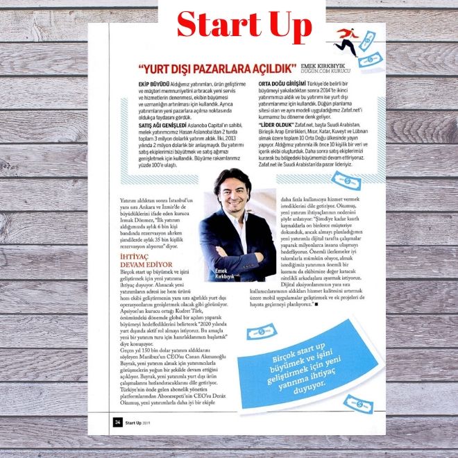 Düğün.com olarak Start Up Dergisi'nin Kasım 2019 sayısında yer aldık. Yazıdan öne çıkan satır başları şöyle:
