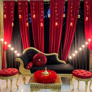 Kına ve bekarlığa veda eğlencelerimizde çiftlerimize arka fon ve konsept masa gibi hizmetler verebiliriz. Kına tahtlarımızda zümrüt yeşili ve kırmızının en güzel tonları gibi alternatifler sunabiliriz. Dekor ve süslemelerimizi yaparken çiftlerimizin zevkini ön planda tutuyor ve her şeyin gönüllerince olmasını sağlıyoruz. Puflar, tüller ve modern ışıklandırmalar ise kına veya bekarlığa veda eğlencenizi düzenlediğimiz mekana ayrı bir hava katıyor.