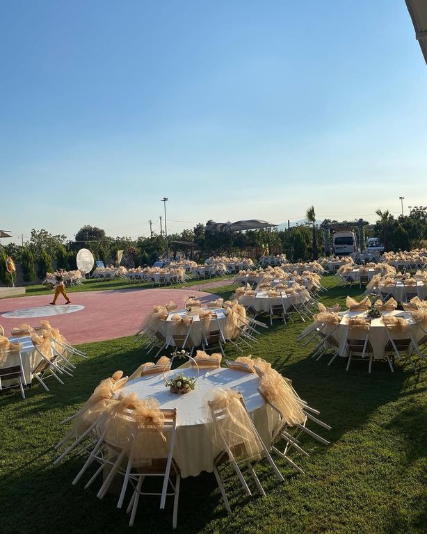 Tamamı çim zemin üzerinde konumlanan davet alanı, açık havada özgürce planlanan organizasyonlar için ideal bir yapı sunuyor. Geniş bahçe düzeni, masa yerleşimlerinin ferah biçimde yapılmasına olanak tanıyor. Ağaçlarla çevrili doğal alan, gün boyu ferah bir atmosfer oluşturuyor. Bu yönüyle İncirliova İnciraltı Kır Düğün Salonu, doğayla iç içe davetler için sade ama etkili bir alan sağlıyor.