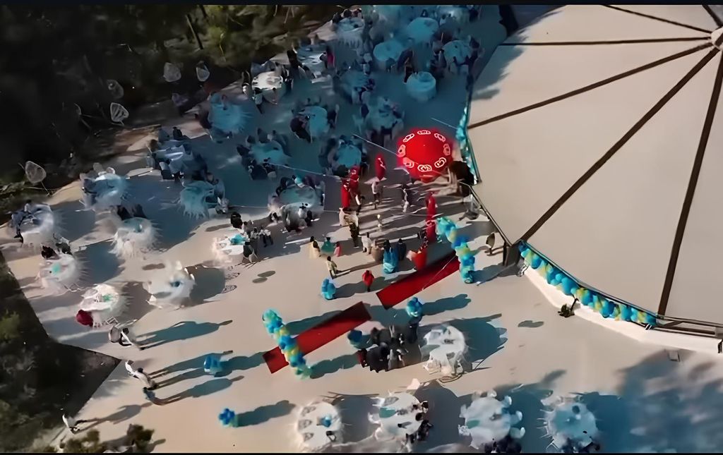 Çamlıpark’ın dekorasyonunda beyaz yuvarlak masalar, floral desenli modern sandalyeler ve minimal çiçek aranjmanları kullanılıyor. Giriş yolunda pembe çiçeklerle süslü pergolalar romantik bir karşılama oluşturuyor. Davet alanında mavi ve beyaz tonlarda balon süslemeleri eğlenceli bir hava katıyor. Ağaçlar arasına asılan aydınlatmalar akşam davetlerine sıcak ışık sağlıyor. Bu detaylar mekana sade ama etkileyici bir görünüm kazandırıyor.