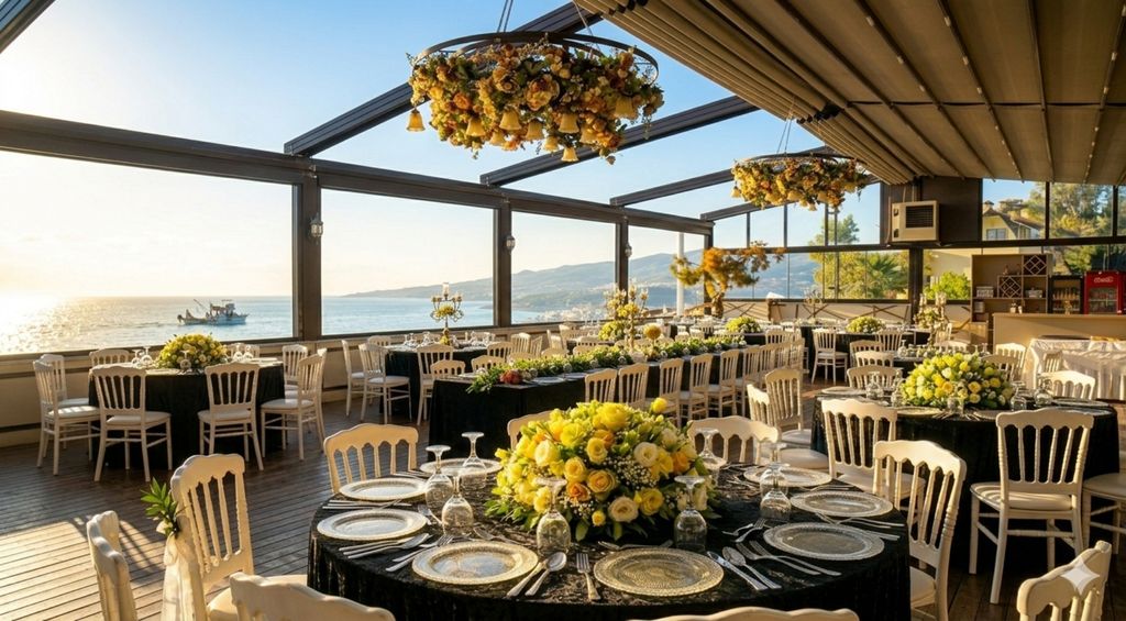 - Açılır kapanır tavan Bahçede davet alanı Çim zemin Deniz kenarında Kolonsuz salon Şehir dışında Terasta davet alanı Yüksek tavan After party alanı Hazırlık odası Olumsuz hava koşullarına karşı önlem