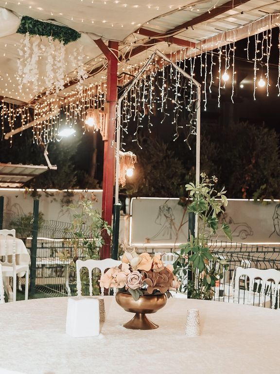 Asrena Taşev, açık ve kapalı alanlardan oluşan geniş bir bahçeye sahip. Burada 100 ila 250 kişilik bir kır düğünü organize edebilirsiniz. Denizli kır düğün salonları arasında öne çıkan mekanda üst ve alt olmak üzere iki farklı bölüm bulunuyor. Üst alan tamamen kapalı şekilde tasarlanırken, alt bölümde geniş dans pisti ve çiftlere özel alan yer alıyor.