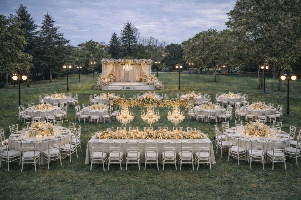 Torch Tarabya düğün için en özel detaylarından biri, unutulmaz bir atmosfer yaratan dekorasyonumuzdur. Mekanlarımızda, beyaz masa ve beyaz sandalyeler ile ferah ve zarif bir temel oluşturuyor; şıklığı tamamlayan gold şamdanlar ve beyaz çiçekler ile romantik ve sofistike bir dokunuş katıyoruz. Sade ama etkileyici dekorasyon anlayışımız, hem doğanın güzelliklerini ön plana çıkarıyor hem de çiftlerimizin hayallerindeki kır düğünü ambiyansını yaratıyor.