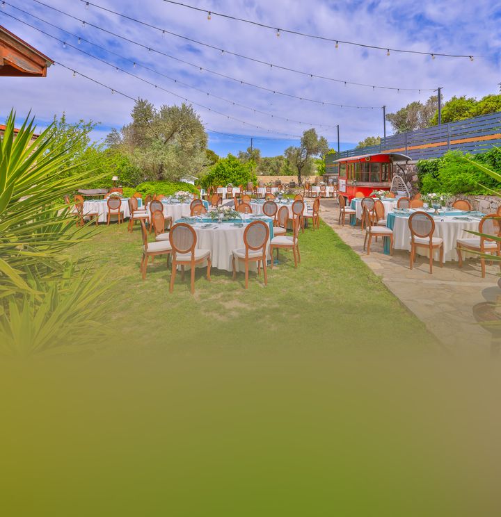 Kır düğünü ışıklandırması var. • Rustik konsept uyguluyor. • Zeminde doğal çim kullanıyor. • Özel açık nikah alanı var. • Fotoğraf çekim alanı mevcut. • Büyük dans pistine sahip. • Canlı müzik seçeneği sunuyor. • Bride party seçeneği sunuyor.