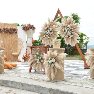 Açık davet alanında kullanılan beyaz süslemeler ve çiçek dekorları çiftlere kusursuz bir kır düğünü deneyimi sunuyor. Nikah alanı ise çiftin tercihine göre farklı tonlardaki çiçekler, tüller ve kumaşlarla dekore edilebiliyor. Kapalı alanda ise ahşap konsept göz dolduruyor. Ahşabın otantik görünümü ile pampas otlarının doğal güzelliği ile birleştiriliyor ve ortaya şık bir görünüm çıkıyor.