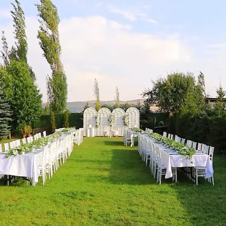 Geniş kır alanımızı özel gününüzde size özel tahsis ediyoruz. Bunun yanında üstü kapalı etrafı açık alanımızda bulunuyor. Davetli sayınızı öğreniyor ve masa yerleşim planımızı hazırlıyoruz. Masa ve sandalye giydirmelerinde birçok renk alternatifi bulunuyor.. Kına ve bekârlığa veda partinizi konsept bir şekilde kutlamak isterseniz, İş ortağımız olan organizasyon firmalarından temin ettiğimiz süslemelerle kır bahçemize renkli bir görünüm kazandırıyoruz.