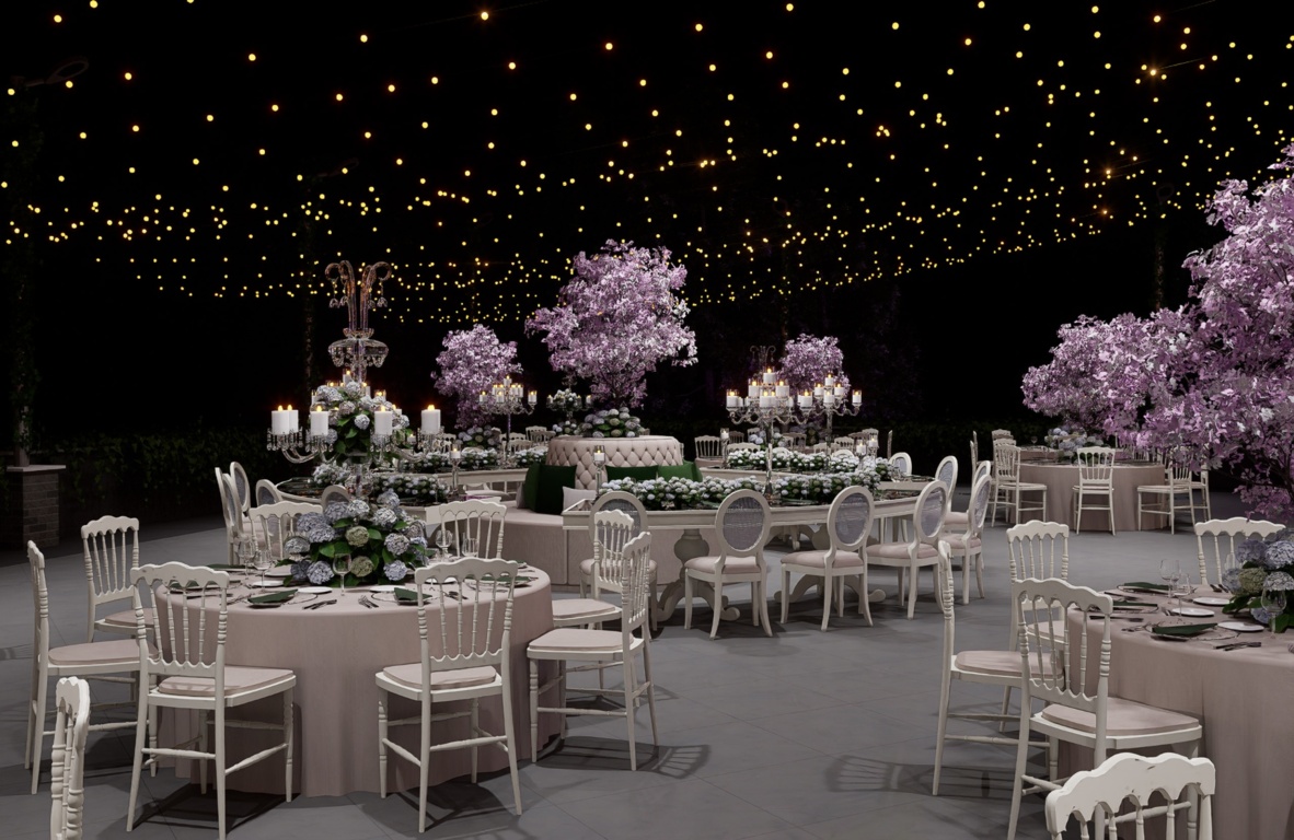 Söz konusu şıklık olduğunda da hem kapalı salonumuzda hem açık davet alanında modern ve yenilikçi bir çizgide dekorasyon tercih ediyoruz. Temiz hava eşliğinde huzur bulmanızı sağlayacak olan açık balo salonumuzda S şeklinde aile ve arkadaş masaları ile hazeran sandalyelere yer veriyoruz. Beyaz ve gri tonların hakim olduğu süslemeleri konuklar için hazırlanan yuvarlak masalarla tamamlıyoruz.