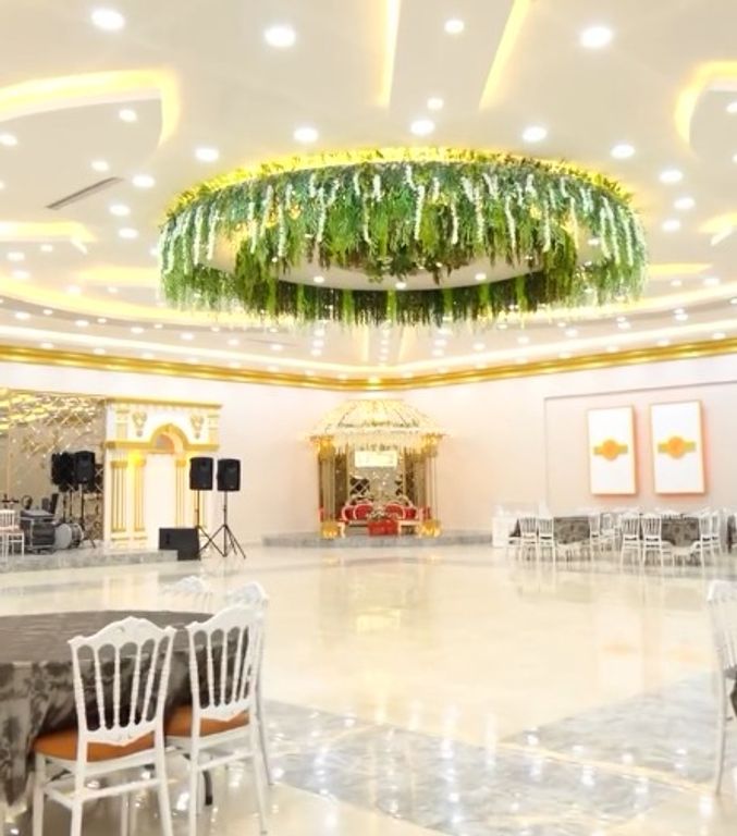 Mardin davet evleri arasında salonumuzun genel tasarımında kullandığımız beyaz ve altın sarısı tonları, mekanın asaletini pekiştiren en önemli unsurlar arasında yer alıyor. Modern aydınlatma sistemlerimiz ve tavandan sarkan şık avizelerimizle, davetinizin ruhuna uygun bir ışıklandırma atmosferi yaratıyoruz. Masalarımızda tercih ettiğimiz özenli süslemeler, şamdanlar ve seçkin örtülerle her detayın bir bütünlük içinde görünmesini sağlıyoruz.