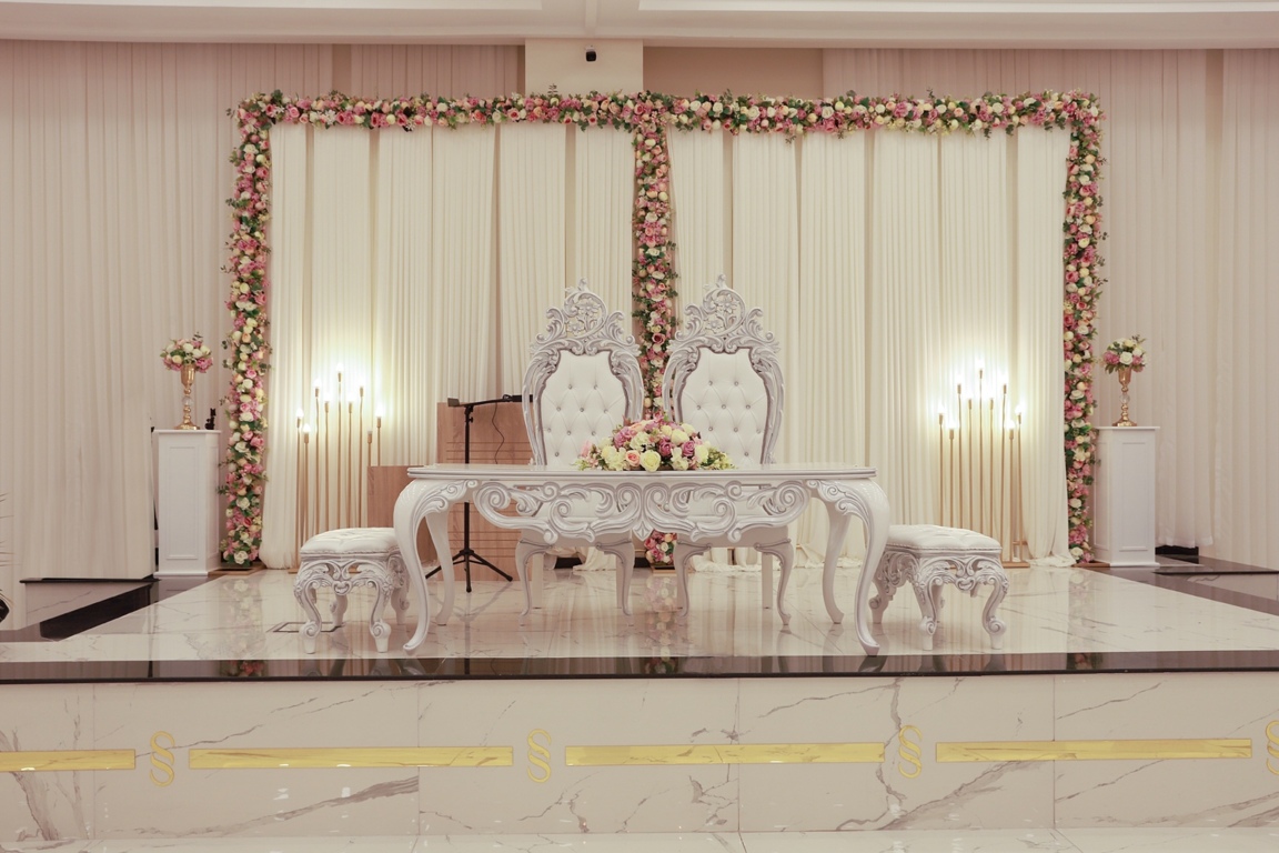 Mekan, modern ve klasik detayları bir araya getiren dekorasyon anlayışıyla dikkat çekiyor. Salon genelinde beyaz-altın tonları hakimken, masa düzeninde şık suplalar, zarif çiçek aranjmanları ve cam şamdanlar kullanılıyor. Kristal avizeler mekana sofistike bir hava katarken, sahne ve ışıklandırma sistemi davetinizin büyüleyici bir atmosferde gerçekleşmesini sağlıyor. Rize düğün salonları arasında estetik dokunuşlarıyla öne çıkan Saadet Sarayı, çiftlerin ve misafirlerin beğenisini kazanıyor.
