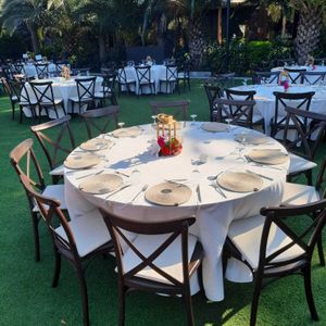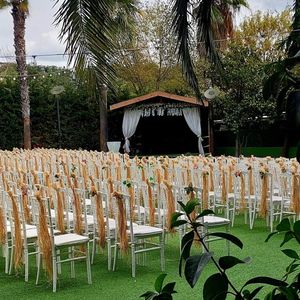 Doğanın güzelliğine yakışan sade bir şıklıkla karşılıyoruz sizi… Paşa Garden’ın kır konseptindeki nikah törenlerinde 8 ila 10 kişilik yuvarlak masalarda ağırlıyoruz konuklarınızı. Beyaz saten masa örtüleri üzerinde rengarenk çiçek aranjmanları, gümüş ve beyaz şamdanlar tercih ediyoruz. Tiffany sandalyeler ile kilise düzeninde nikah törenleri de tasarlıyoruz, dilerseniz! Sandalyelere ise tüller bağlıyor, uçuş uçuş bir görünüm ve doğa ile uyumlu bir şıklık elde ediyoruz.