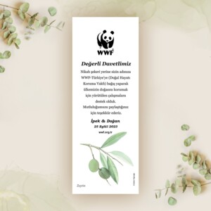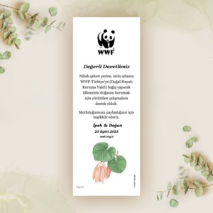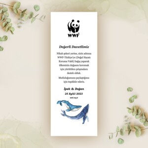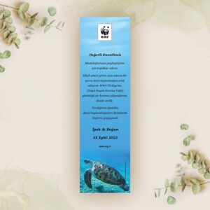 WWF-Türkiye’nin sunduğu bu anlamlı seçenekler arasında yunus, deniz kaplumbağası, orfoz ve saz kedisi gibi hayvanlar yer alıyor. Bu hayvanlardan birini tercih ederek davetiyenize bu hayvanın fotoğrafını veya resmini ekletebilir, kişisel bilgilerinizle birlikte tarihler, dilekler veya tebrik notlarınızı da yazdırabilirsiniz. Böylece misafirlerinize anlamlı bir mesaj verirken doğa için de bir adım atabilirsiniz.