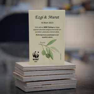 WWF-Türkiye ile gerçekleştirdiğiniz düğün davetiyesi, nikah şekeri ya da diğer hediyeliklerinizi kişiselleştirerek doğal hayata katkı sağlamanız mümkün. Davetiyeler ve hediyelikler üzerinde yer alan nesli tükenmekte olan hayvanların fotoğraf ve resimleriyle hem farkındalık yaratabilir hem de bu canlıların korunmasına destek olabilirsiniz. Bunlara ek olarak seçtiğiniz hayvanı "evlat edinerek" ona bağışta bulunabilirsiniz.