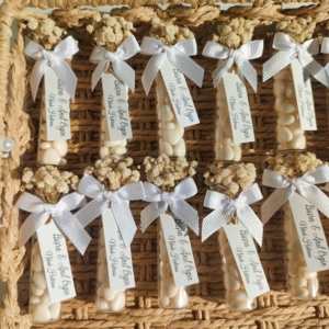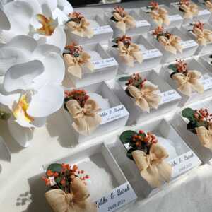 Nikah ve nişan hediyelikleri İstanbul’da La Ritsa Atelier ayrıcalıklarıyla bir başka! Çünkü çiftlerimize düşündüğünüzden çok daha fazlasını sunuyoruz. Lezzetli şekerlemeden güzel kokan mumlara, hatıraya dönüşecek magnetlerden tesbihler hemen her çeşit modelde üretim yapıyoruz. Seçtiğiniz nikah şekeri veya hediyeliğe uygun; isteme çiçeği, nedime çiçeği, damat yaka çiçeği, sağdıç yaka çiçeği ve gelin buketi de tasarlayabiliyoruz. Tabii düğünde de çikolatadan vazgeçmem diyenleri de unutmuyor, konuklarınızın ağızlarını taze ve lezzetli çikolatalarla tatlandırıyoruz.